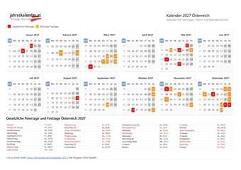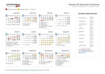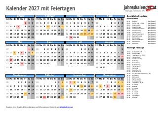Kalender 2027 Niederösterreich zum Ausdrucken