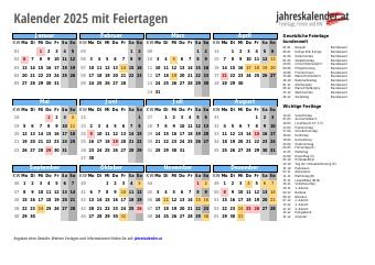Kalender Österreich 2021-2025 zum Ausdrucken (PDF)